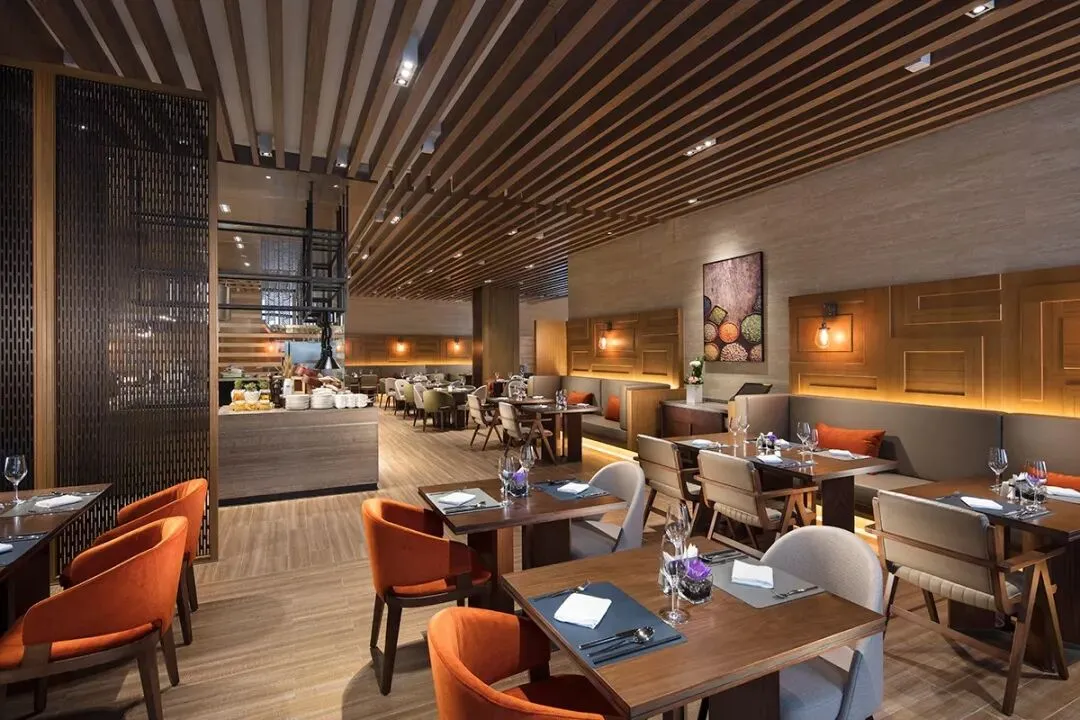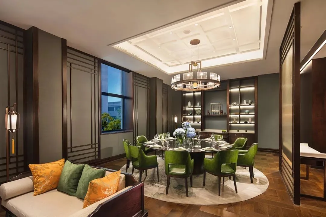 酒店有两个餐厅,一个是提供杭帮菜创意中式菜肴的中餐厅,新中式的设计空间,让吃也兼具轻奢感。