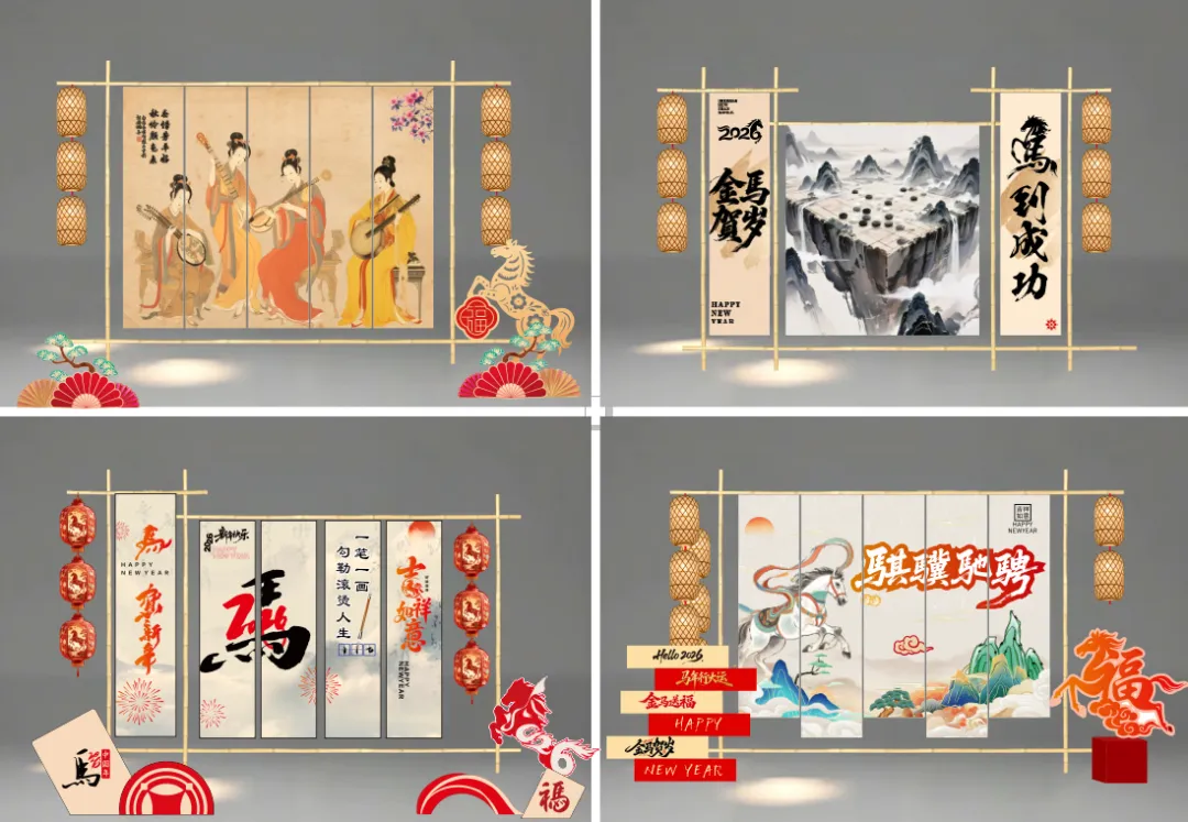 这里将打造「四艺迎骐骥」主题打卡长廊,汉风唐韵的琴棋书画屏风、古雅古琴、雅致案几、精美棋盘与文房四宝错落陈列,随手一拍都是古风大片。