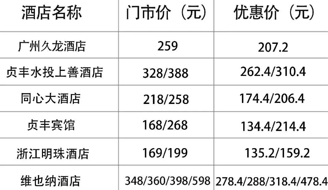 2. 酒店八折入住:凭以上票据,入住贞丰县指定酒店,享门市价8折优惠(酒店价格随淡旺季、节假日略有浮动,最终以预定时酒店门市价格为准)