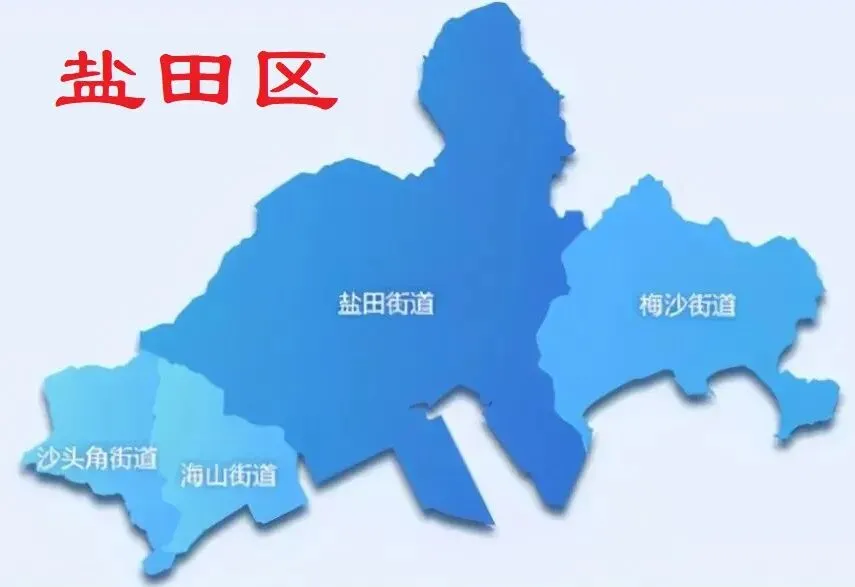 盐田区辖沙头角街道、海山街道、盐田街道、梅沙街道4个街道和2个市保税区(沙头角、盐田港),区政府驻海山街道。