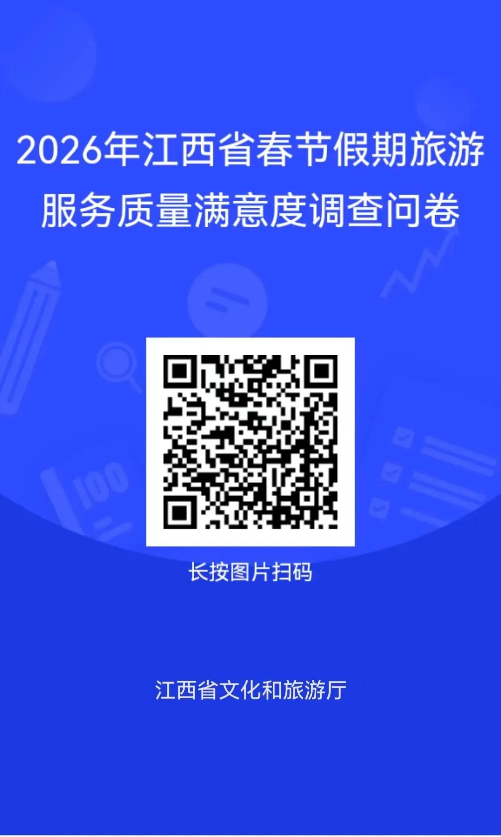 为全面、客观了解全省旅游服务水平,切实提升旅游服务质量,满足游客多层次消费需求和游览体验。江西省文化和旅游厅在2026年春节期间,继续以线上形式面向广大游客发出问卷调查。期待您提出宝贵意见和建议,对您的积极参与和大力支持,谨致谢忱!