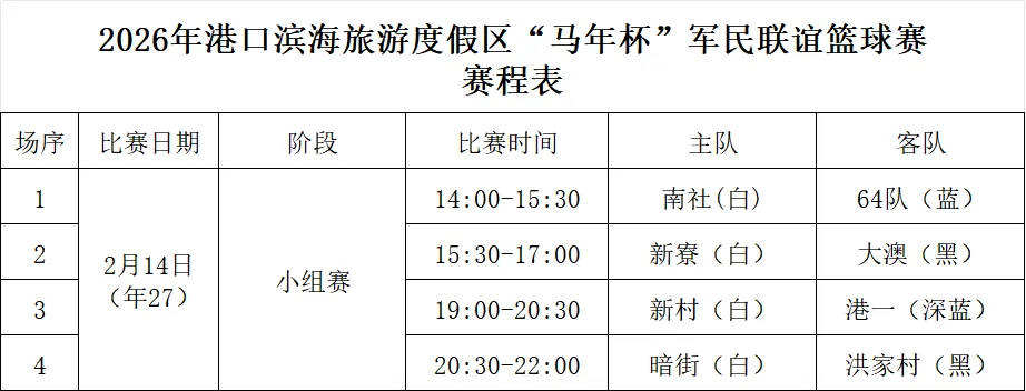 【直播预告】2026年港口滨海旅游度假区“马年杯”军民联谊篮球赛今日开启