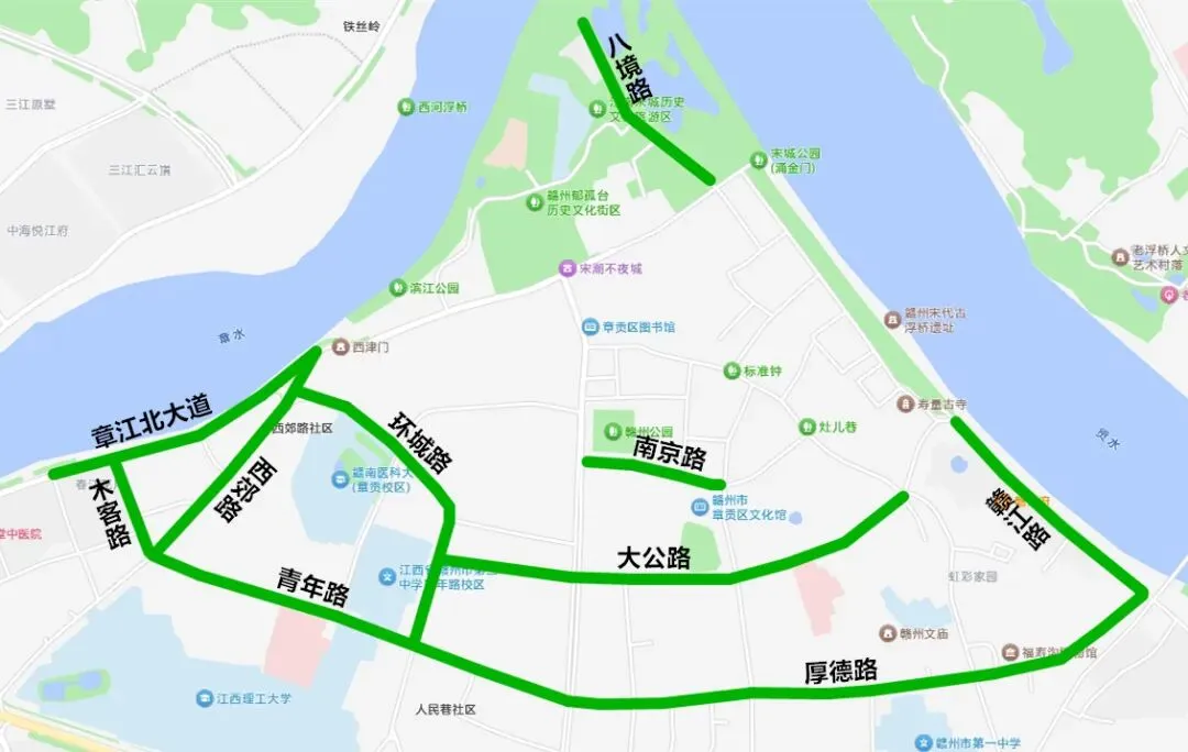 管制路段:章贡路老地委宿舍路口至西津路基督教堂路口、建国路(章贡路口至阳明路路口)