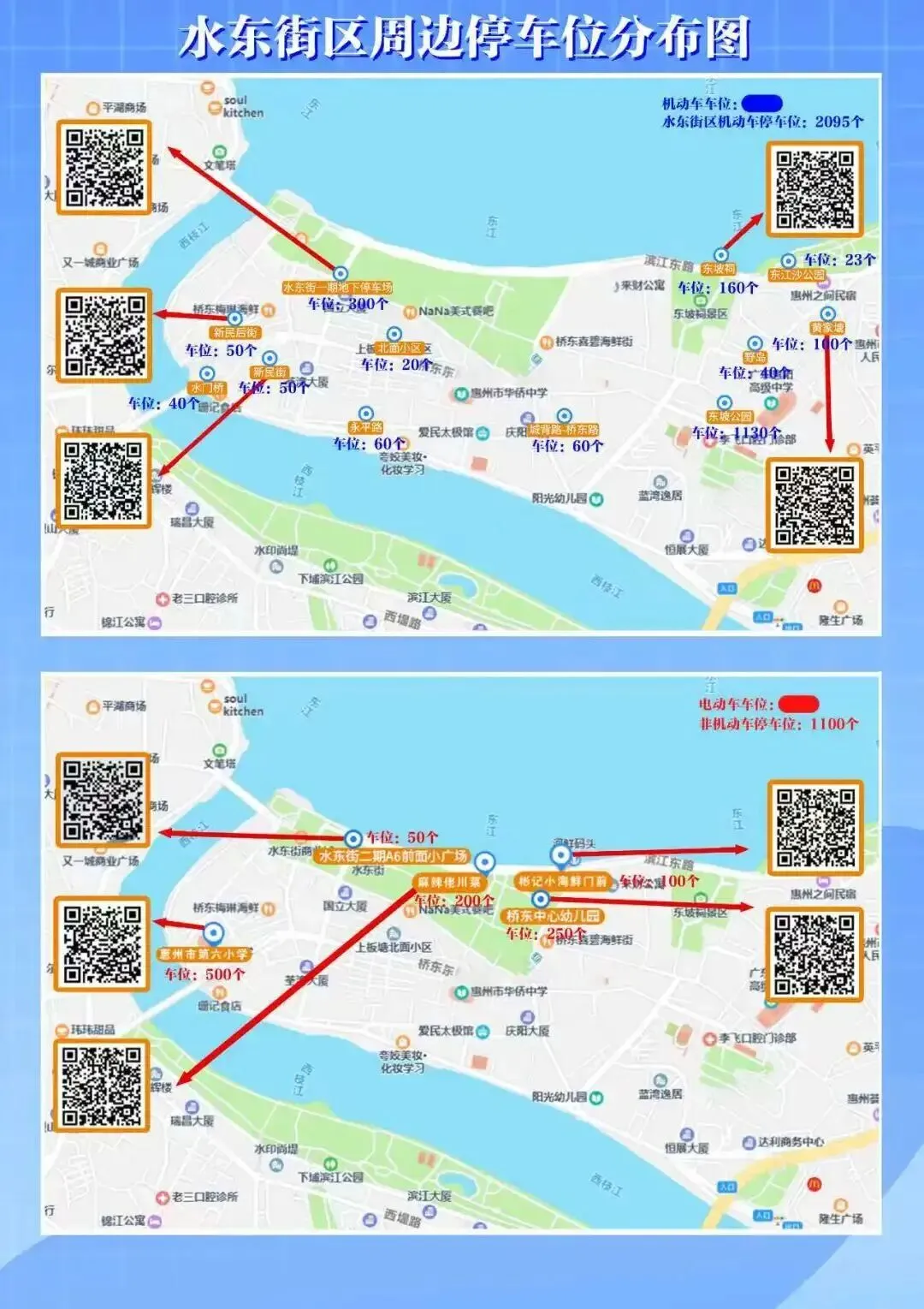 在新春佳节之际,惠城区桥东街道在水东街周边设置机动车、非机动车指定停放点,其中机动车停车位超2000个,非机动车停车位超1000个。方便来水东街游玩的旅客市民们。