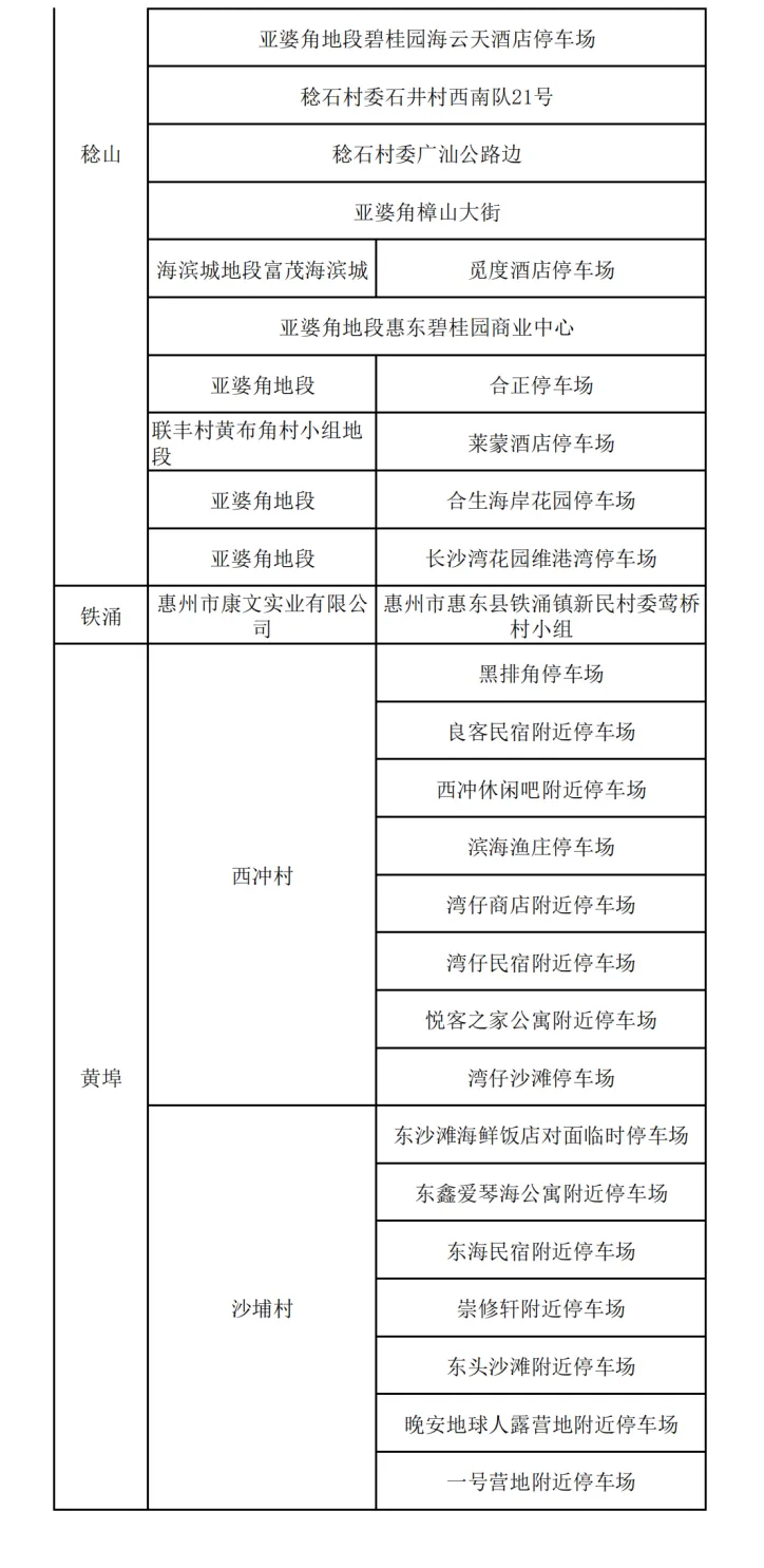 地点:惠城区人民政府正门两侧地面停车场、惠城区行政服务中心地面停车场、西湖大剧院地面停车场、一场三馆(惠城区文化馆、图书馆、青少年宫)地下停车场。