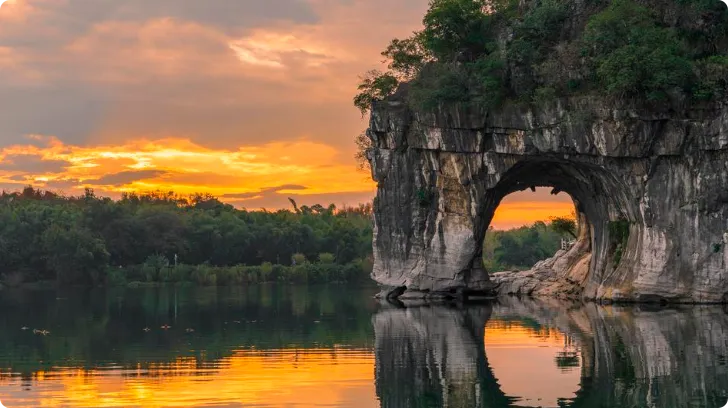 第一次去象鼻山的时候,天刚放晴,江水亮得像擦过的一样。站在岸边看那座像喝水一样的山,心里有种“这东西照片根本拍不出来”的感受。江水的绿是柔的,山的灰是稳的,风吹过有种细碎的凉。