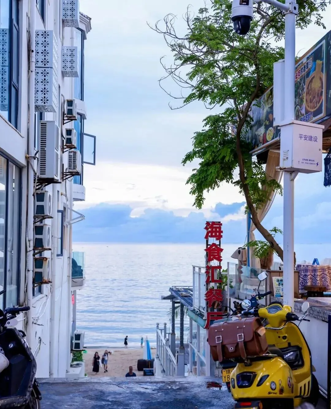 蓝白相间的建筑风格,被称为“海南版圣托里尼”,每条街道都通向大海,充满浪漫气息。