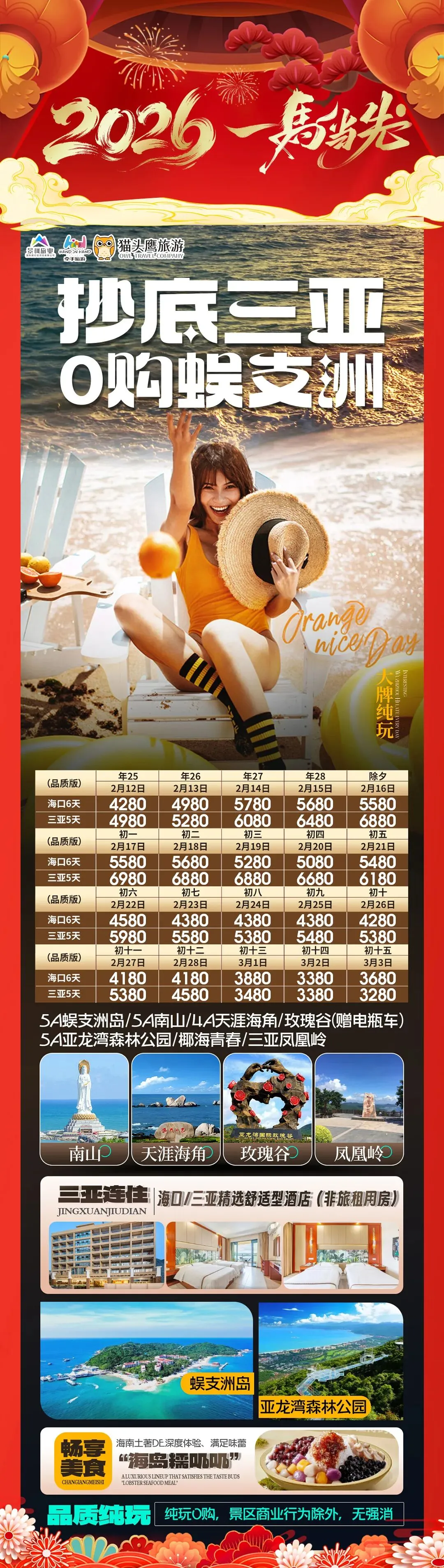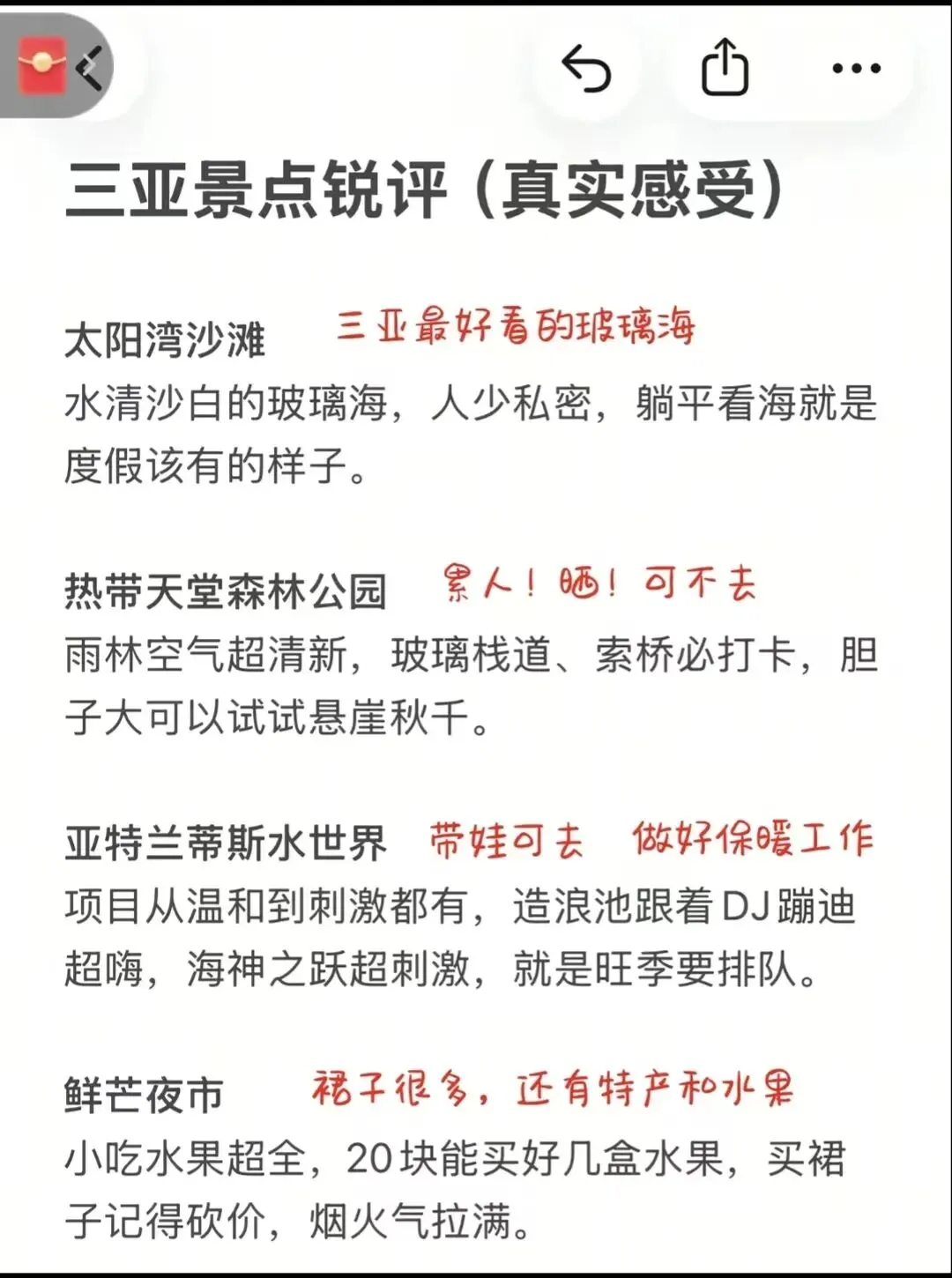 您现在的位置是:首页 > 国内旅游目的推荐 > 正文 国内旅游目的推荐 三亚景点锐评 admin2026年02月14日 13:11:17国内旅游目的推荐8 三亚景点锐评三亚景点锐评,仅是个人观点,仅供参考。 转载请说明来源于"旅荐网",部分内容转载自网络,如有侵权请联系qlwl@foxmail.com删除 本文地址:https://www.15386.cn/post/106525.html 上一篇 【趣旅行-过大年】临沭景区狂欢指南!非遗/冰雪/烟花秀让你嗨翻天 下一篇 东屿岛旅游度假区运营管理中心周密部署2026年春节运营,护航安全与品质体验 相关文章 收藏这份出游指南,一键开启快乐模式! 河南洛阳旅游保姆级攻略,值得收藏! AI 生活实用篇:旅行攻略、健身计划、家常菜谱,细节化指令让答案更贴心 女大三亚淡季两天一晚旅游攻略!人均2k��️ N30°度假海岸|象山渔文化研学旅游指南来了~ 伊犁五月初春马背旅行|小众旅行攻略 酒钢集团2026届春季校园招聘行程安排(第二篇) 4.7-4.10京平律师部分开庭行程安排,欢迎咨询或预约旁听(涉及:北京、河北、安徽、重庆、山东) 文旅部“人工智能+文化和旅游”应用试点申报工作开展,5月15日截止! 每天教你800个心眼子·国内旅游避雷指南 发表评论 取消回复 评论列表 这篇文章还没有收到评论,赶紧来抢沙发吧~