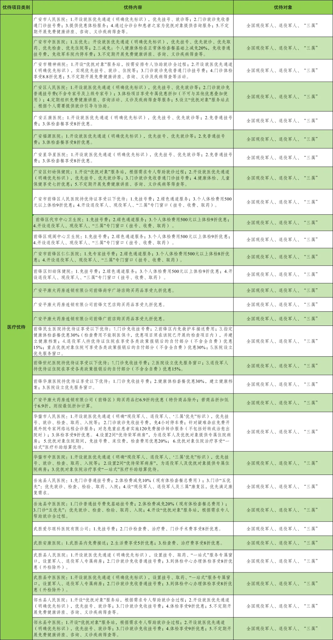 近日 广安市退役军人事务局 面向社会公布 最新优待项目清单 生活服务等多领域 这波诚意满满的福利 具体优待清单 👇👇👇 一、文旅优待
