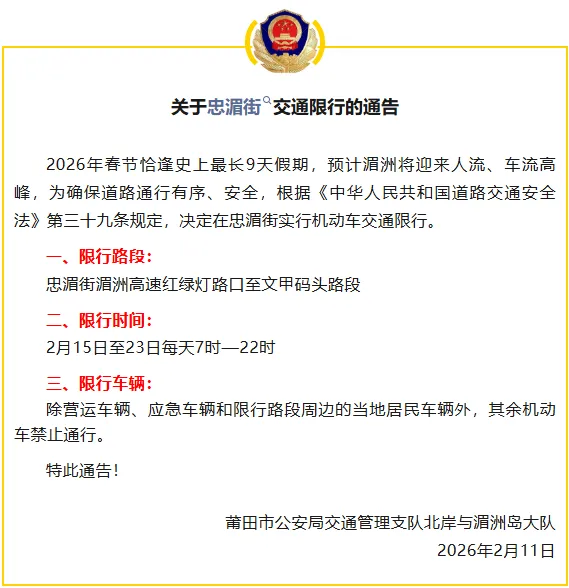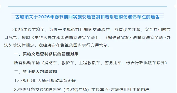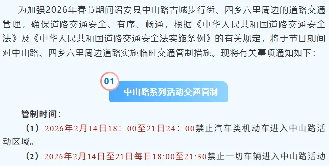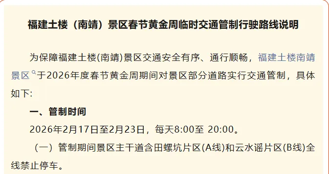 注意!春节假期,这些路段、景区有交通管制→