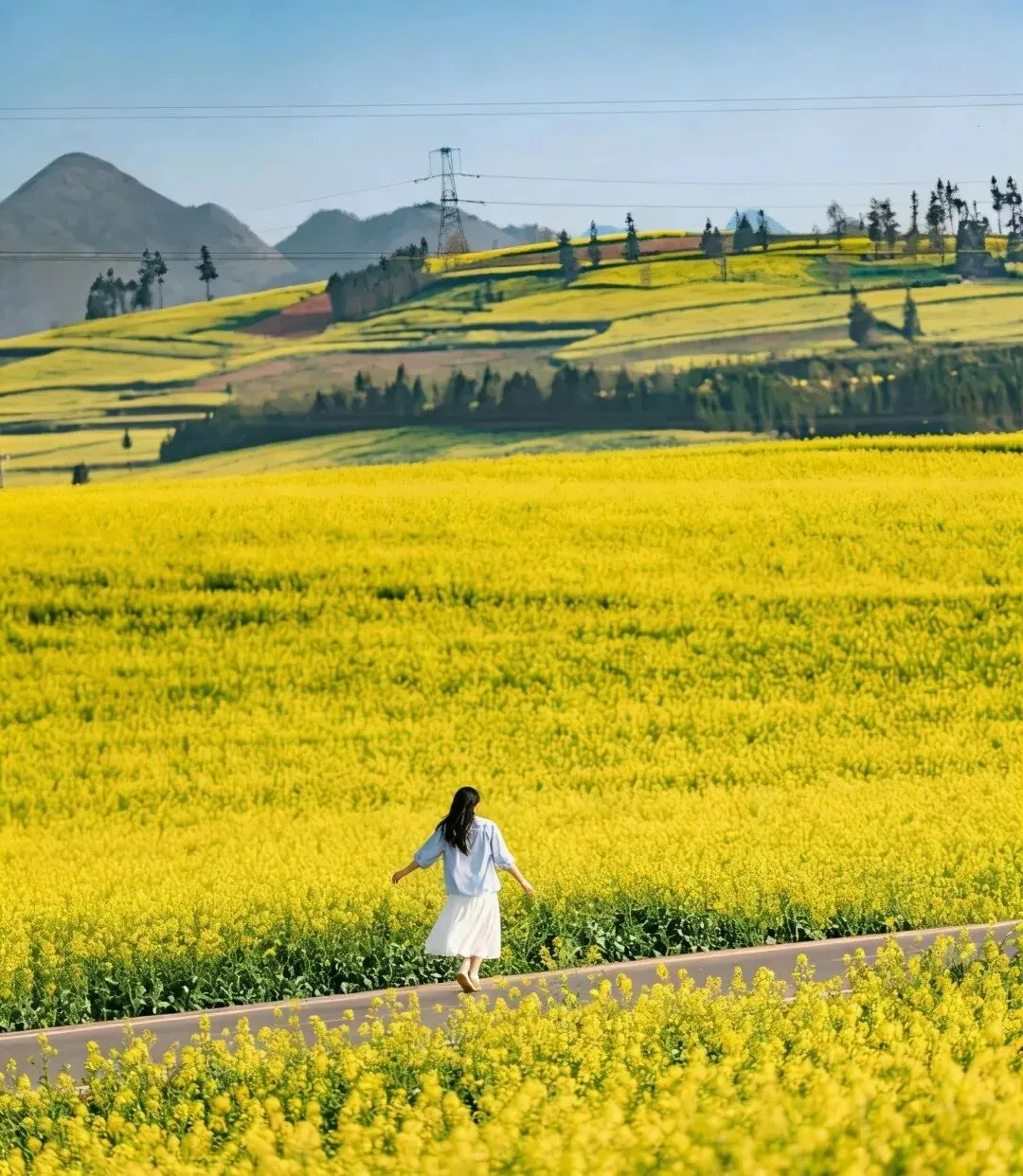 喀斯特峰林与油菜花田交织,构成绝美的春日画卷。