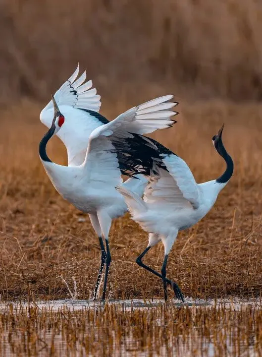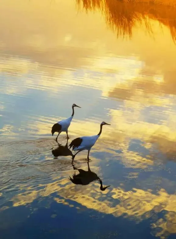 你可以看仙禽临水梳羽、振翅翩飞