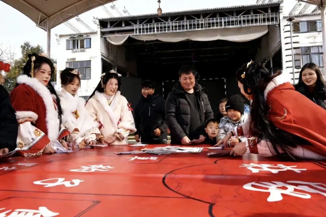 记者在二郎山景区看到,一张张仿古“银票”正从“NPC”手中递出。游客通过互动触发任务、赢取银票,再凭票兑换新春好礼。沉浸式剧情让游园从“看景”变“入戏”,大人小孩都乐在其中。