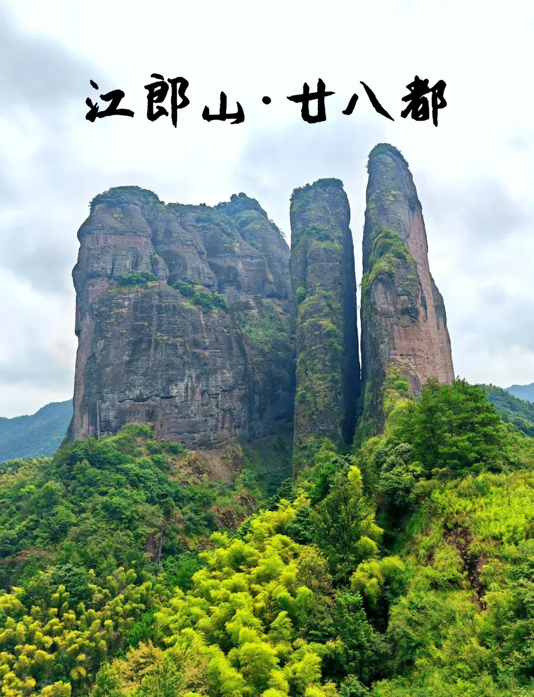 ---下午驱车前往国家5A级景区【江郎山】(免门票90元,15元/人景区小交通需自理)仙霞山脉北麓,浙、闽、赣三省交界处。风景区以丹霞奇峰为主要特色,由三爿石、十八曲、塔峰、等部分组成。景区森林资源极其丰富,森林覆盖率达82%以上。集自然风光、雄关古道、人文古迹风土人情于一身。