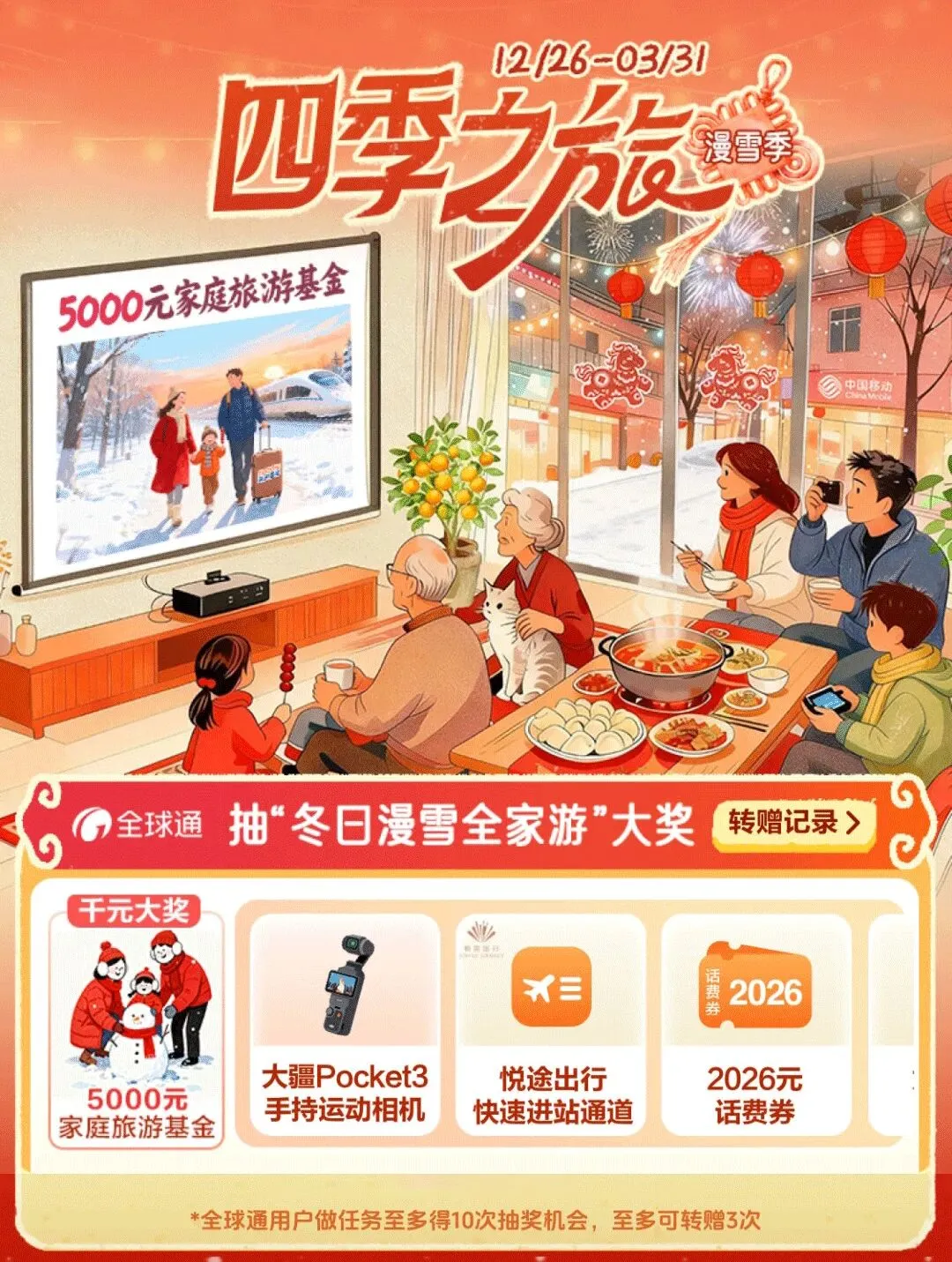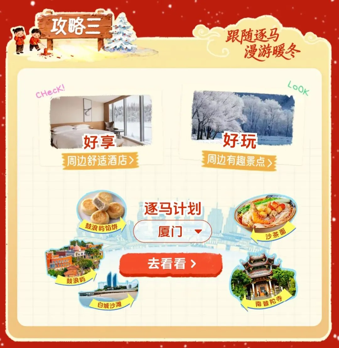 您现在的位置是:首页 > 国内旅游目的推荐 > 正文 国内旅游目的推荐 福利丨5000元旅游金!2000元免单机票!抽“冬日漫雪全家游”大奖~ admin2026年02月14日 14:46:29国内旅游目的推荐8 福利丨5000元旅游金!2000元免单机票!抽“冬日漫雪全家游”大奖~*详细活动规则详见参与页面点分享点收藏点点赞点在看 转载请说明来源于"旅荐网",部分内容转载自网络,如有侵权请联系qlwl@foxmail.com删除 本文地址:https://www.15386.cn/post/106696.html 上一篇 多措并举筑防线,平安守护迎新春——海湾旅游区平安办扎实做好春节安全保障工作 下一篇 深入景区宣传执法监督工作 助力冬季冰雪旅游百日行动 相关文章 海南海口旅游必去十大景点游玩攻略,北纬20度的椰城,2026年3月海口全,从骑楼老街到雷琼火山,推荐收藏游玩 长春出发丨清明旅行,保姆级攻略(2) 交旅融合 | 春满集美路!这份公路旅行指南请查收↓ “参赛+旅游”两不误|大连热门打卡地+赛事交通指南 中国旅行指南-甘肃敦煌篇 兰州出发自驾!这6条小众路线,踏青赏花跑山全安排! 春回塞北 | 四月开园景区全攻略,一卡通带你抢先打卡! 2026三亚景点最佳游玩月份+4日自由行攻略!最近路线推荐 【99元定制】小羊军团新疆深度旅行定制方案 北京五一勞動節精選旅遊攻略|北京瑞鴿國際旅行社 Ruige International Service 发表评论 取消回复 评论列表 这篇文章还没有收到评论,赶紧来抢沙发吧~