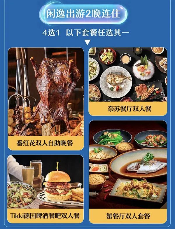 而3688元档则是再多了一份双人正餐,可以从酒店4家餐厅里任选,放个图给大家看看,挺不错的,遛娃的话推荐这个,玩好乐园可以赶紧去吃个饭。