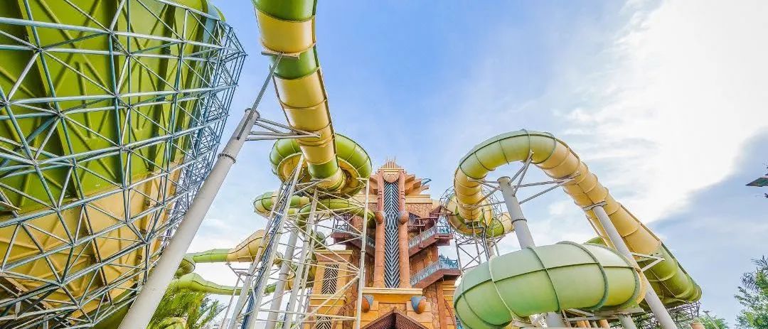 水上乐园有高达24米的“海神之跃”大滑梯、超火的“放手一搏”大滑道等项目,大人小孩都可以玩的爽;