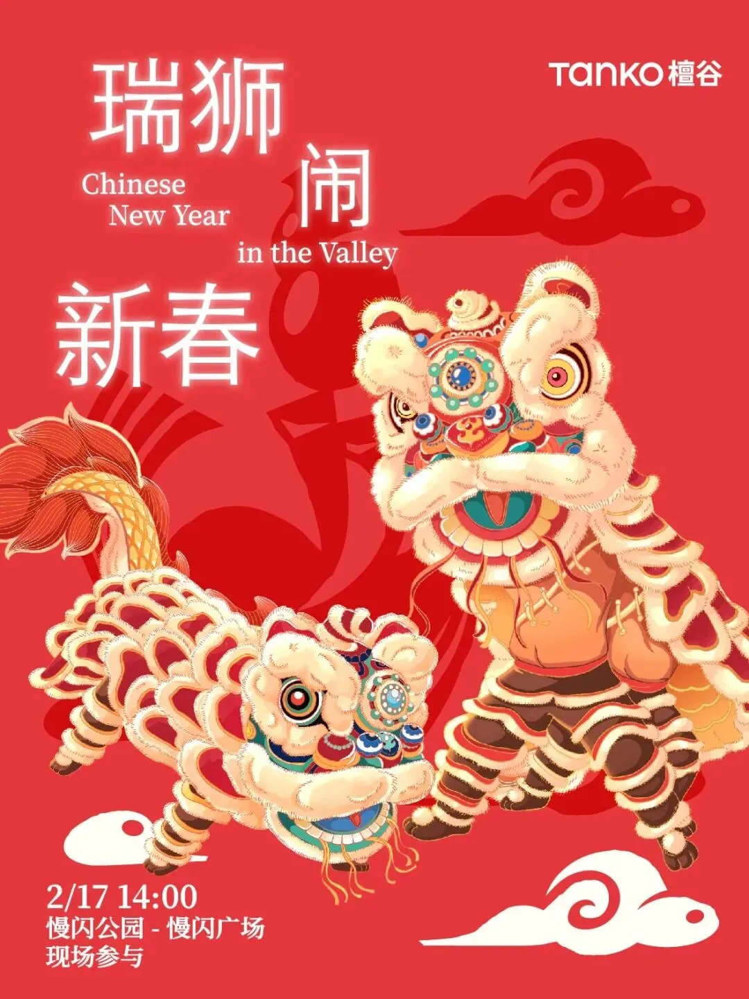 🔴瑞狮闹新春,山谷巡游祈福📅2026 2/17 14:00📍慢闪公园·慢闪广场跟随瑞狮的脚步,热闹唤醒新一年!