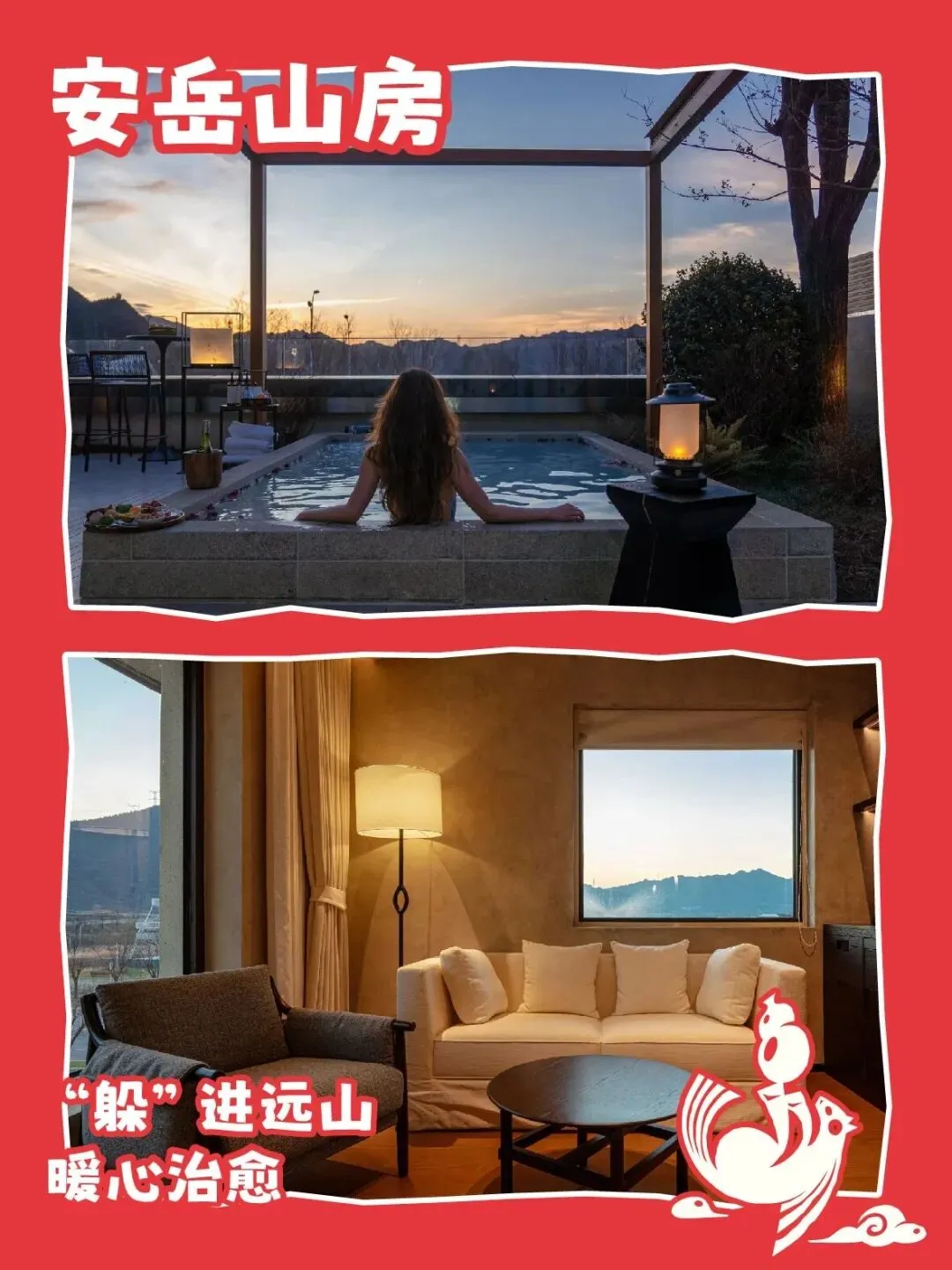 🔴感受远山的暖冬治愈📍安岳山房这个假期放下手机,真正和身边的亲朋好友在一起,过一个团圆中国年吧。安岳山房准备好了暖心私汤和轰趴馆等你来玩。