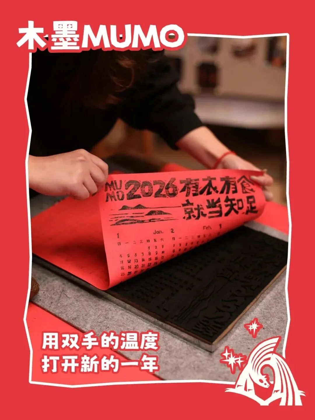 🔴年历拓印,感受新年温暖📍木墨新造到店即可参与。通过古老的拓印,亲手制作出一张新年的日历吧。