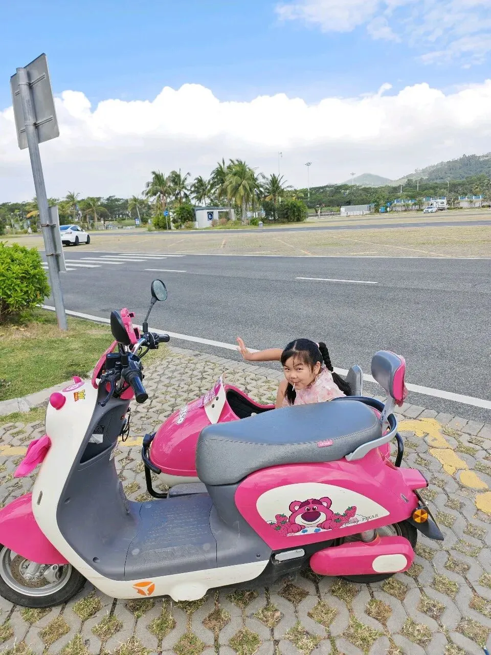 陵水最后一站锁定富力凯悦海洋乐园!租辆超吸睛小粉车出发🚗 沿着海南环岛旅游公路骑了50分钟,单程20公里的风景治愈感拉满(但是那个风是真的大呀,晚上回来后赶紧炫了一包999感冒灵~)