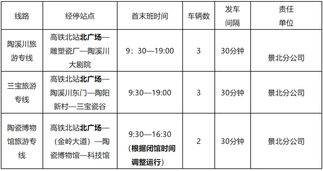 为保障“春节”长假期间运力需求,进一步优化我市旅游营商环境,经景德镇公共交通有限公司结合往年节日期间运力分配调整情况总结,积极组织、认真筹备,制定相关运营方案,现公布一批运营线路。