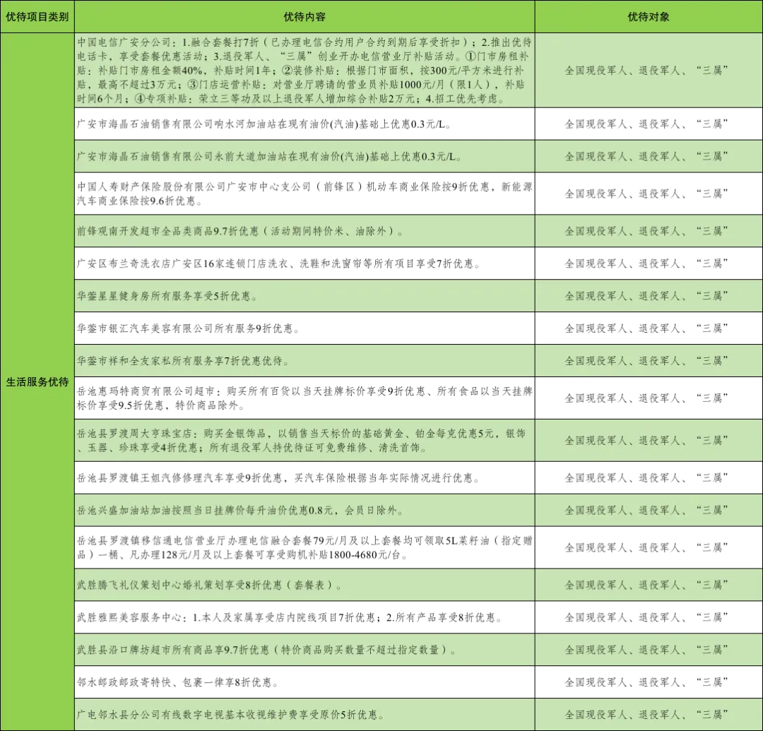 四川 近日 广安市退役军人事务局 面向社会公布 最新优待项目清单 生活服务等多领域 这波诚意满满的福利 快来接收吧!