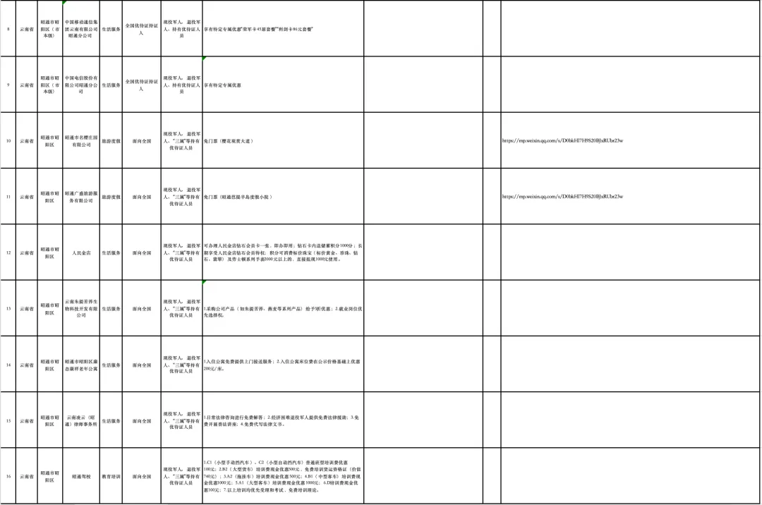 云南 近日 昭通市退役军人事务局 更新了优待目录清单 现役军人、退役军人及“三属” 凭有效证件即可享受 景区免票、购物8折等优惠 具体优惠政策如下