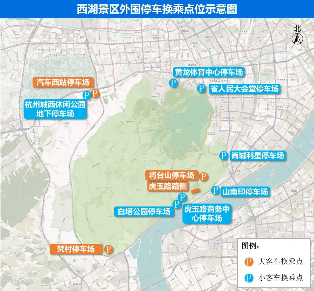 西湖景区停车资源紧张,强烈推荐“外围停车+公交换乘”的出行方式。