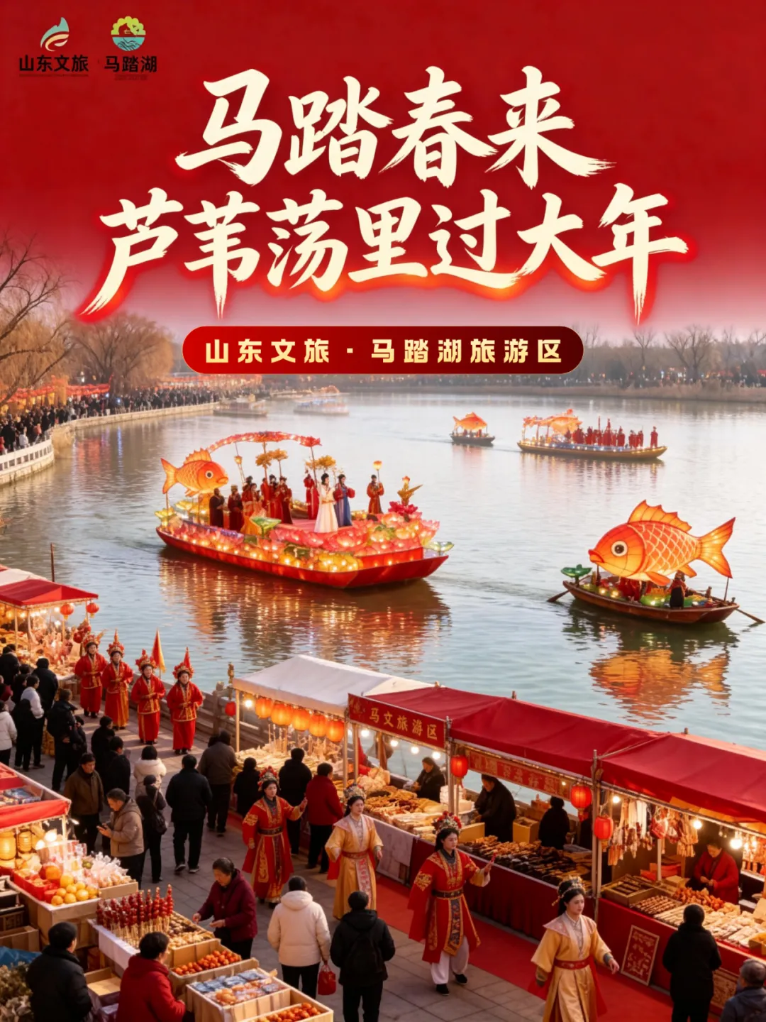 苇摇湖色浸年味,马踏春波赴嘉约。马踏湖的新春藏着桓台最地道的烟火与诗意,连续9天的狂欢盛宴,是春节必冲的核心打卡地!