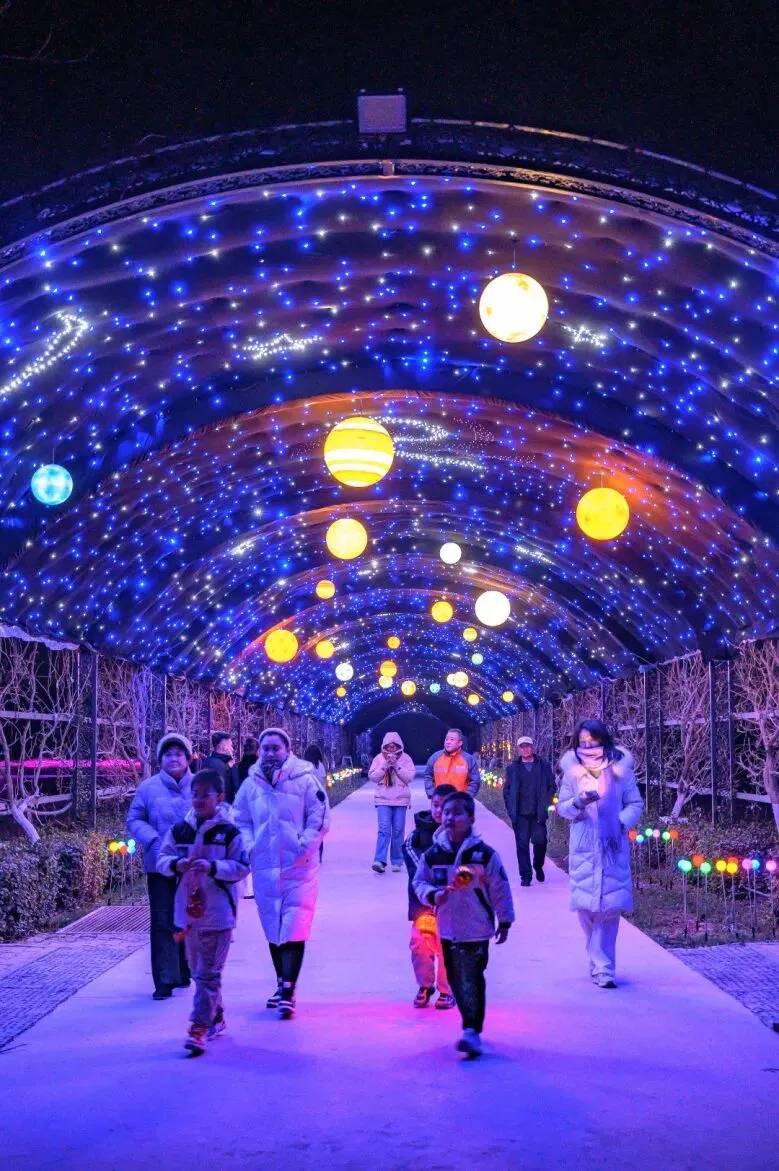 ✅夜晚赏灯:梦幻光影,拍照出片星空与灯光交织,雪地秒变网红打卡地。紫藤长廊流光溢彩,3D全息互动投影科技感十足,浪漫又治愈,夜场灯光秀持续开放,白天玩雪、晚上赏灯,快乐翻倍。