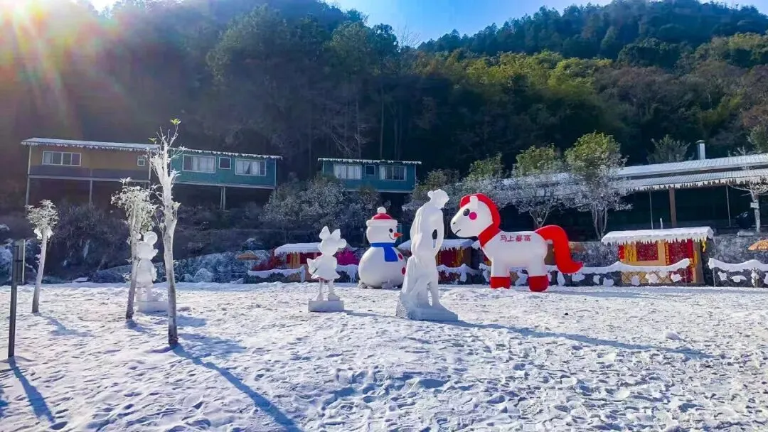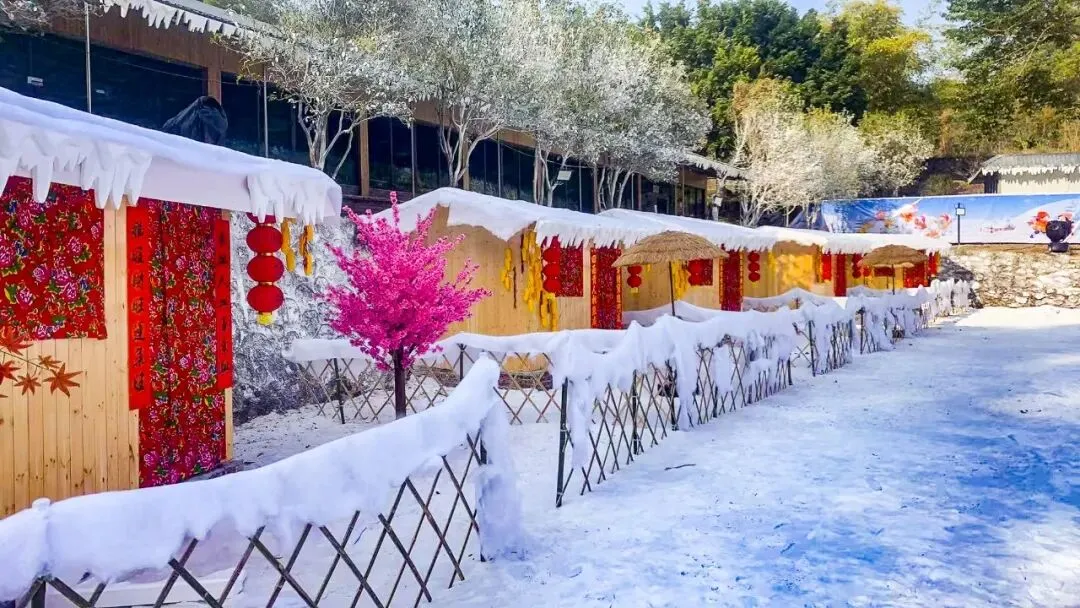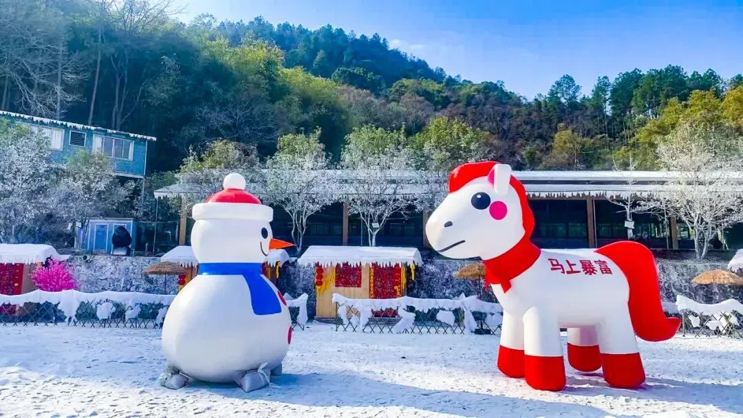 广东终于下雪了!雪房子、红灯笼、雪人、白马……