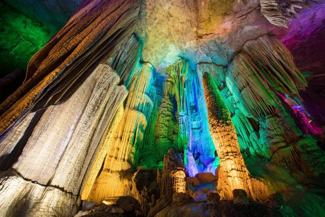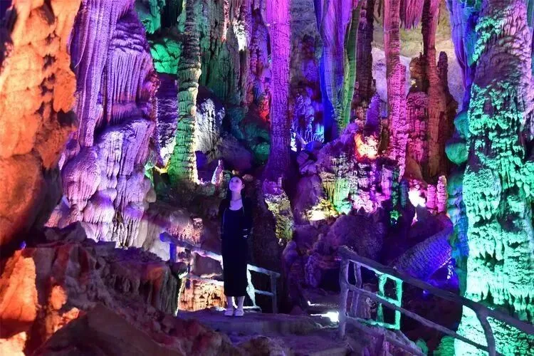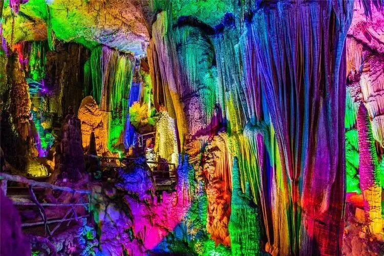 黄腊钟乳石灯光一照,满壁星河