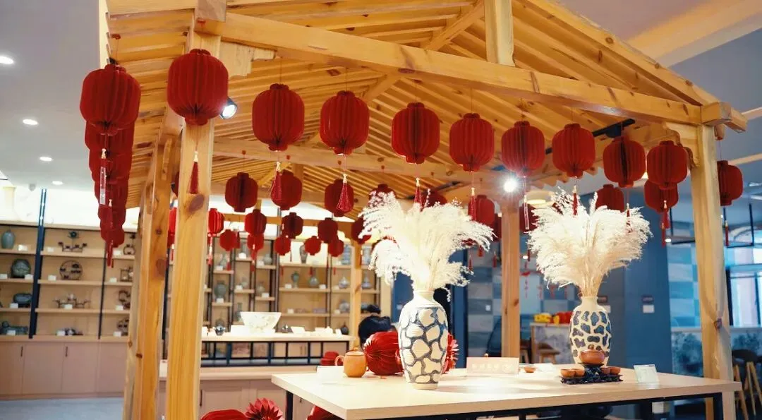 春节期间红灯遍挂,瓷韵交融年味,