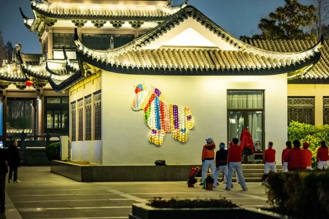 夜幕下的明湖,被这片 “灯笼瀑布” 点亮。印着 “马到成功”“万马奔腾” 的红灯笼垂落如星火,暖红光晕在湖面漾开涟漪。晚风拂过,光影流动,将马年的喜庆与热闹,尽数揉进了明湖的夜色里。