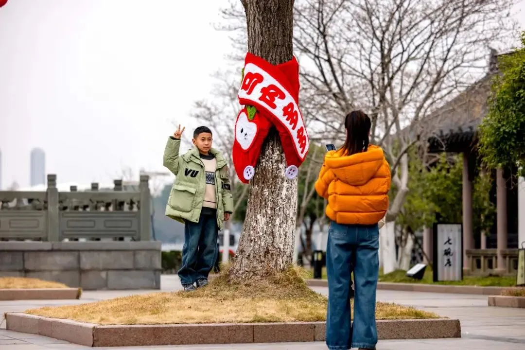 谁能拒绝巨型毛绒 “福” 字的暴击?明湖湖畔的这个 “软乎乎福宝”,红得治愈又时髦,打破了传统福字的严肃感,自带 “多巴胺年味”。