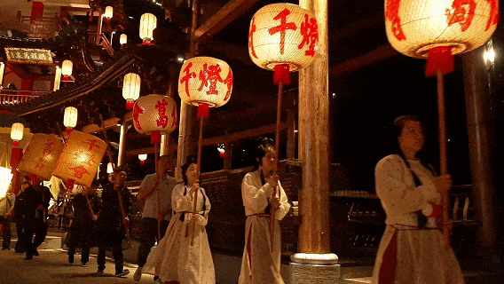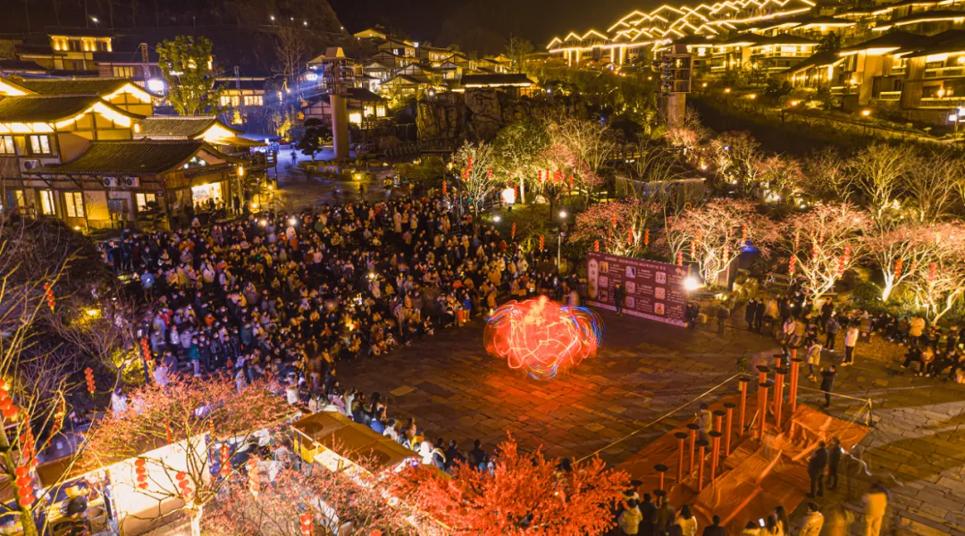 ▲震撼灯光秀水幕电影,花样演艺不打烊--葛仙村
