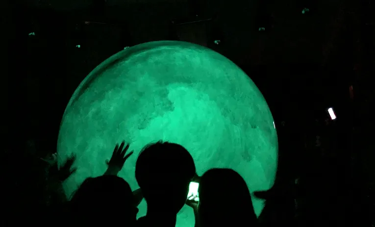 当夜晚来临或是灯光暗去,吸收了光线的夜明珠自身散发光芒。在全黑的环境里,夜明珠通体散发莹绿光芒,犹如明月,淡淡的光亮浸入人心。在现场观看的游客无一不感到惊讶,纷纷拿出手机记录下这精彩的画面。