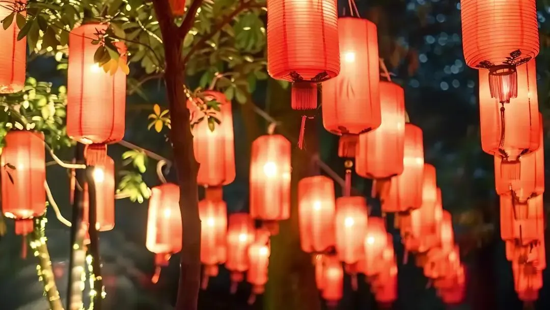 长长的灯笼墙,上百盏手作宫灯组成红色长廊。你可以猜灯谜、许心愿,把写满祝福的红绸系在灯笼下。