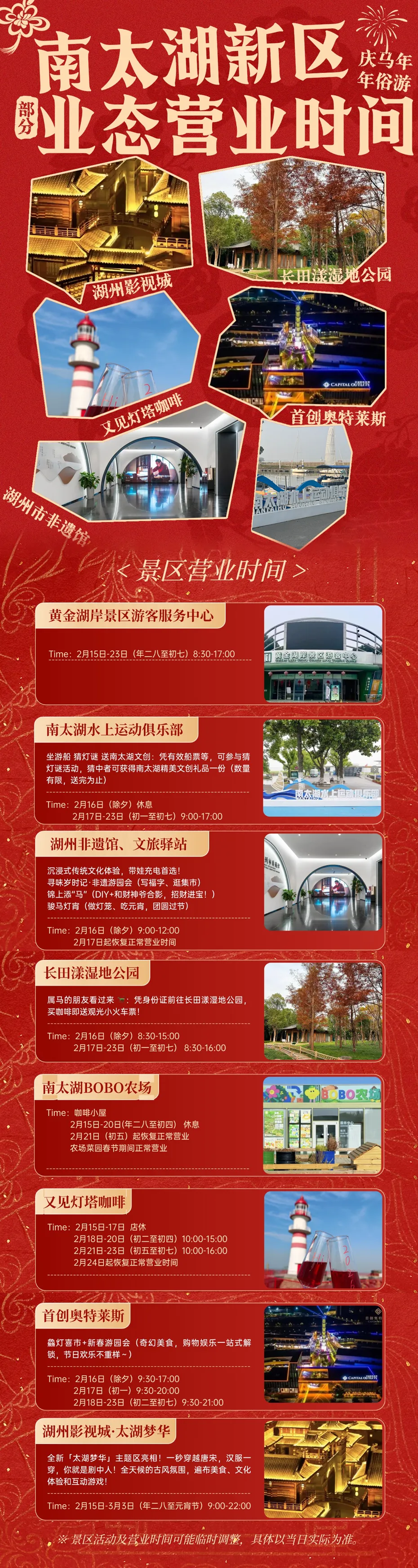 您现在的位置是:首页 > 国内旅游目的推荐 > 正文 国内旅游目的推荐 南太湖各景区春节期间营业时间,请查收! admin2026年02月14日 17:35:41国内旅游目的推荐7 南太湖各景区春节期间营业时间,请查收! 转载请说明来源于"旅荐网",部分内容转载自网络,如有侵权请联系qlwl@foxmail.com删除 本文地址:https://www.15386.cn/post/106985.html 上一篇 李家龙宫景区情景剧观演必备 下一篇 丽江古城景区志愿者招募公告 相关文章 去印度旅行必看攻略:Airtel运营商网络覆盖最全指南 中华洞天超全旅游攻略,溶洞奇观+漂流探险一次打卡 ‖ 青睐绵阳 春漫江油 ㉛ 五台山旅游攻略丨五台山拜佛朝圣最不能错过的6座寺庙! 西葡旅游攻略来喽! 中国公民赴蒙古旅游全攻略|签证、入境、禁忌、节日一篇搞定! 西沙群岛是哪的?隶属三沙市!2026旅游全攻略+南海之梦价格解析 长沙旅游及行李寄存攻略 犍为世界茉莉博览园|万亩茉莉秘境 全域旅游攻略 出片友好旅行|西昌打卡攻略分享建议收藏 跟着外国人游中国:当“他者视角”成为最潮旅行指南——旅行攻略 发表评论 取消回复 评论列表 这篇文章还没有收到评论,赶紧来抢沙发吧~