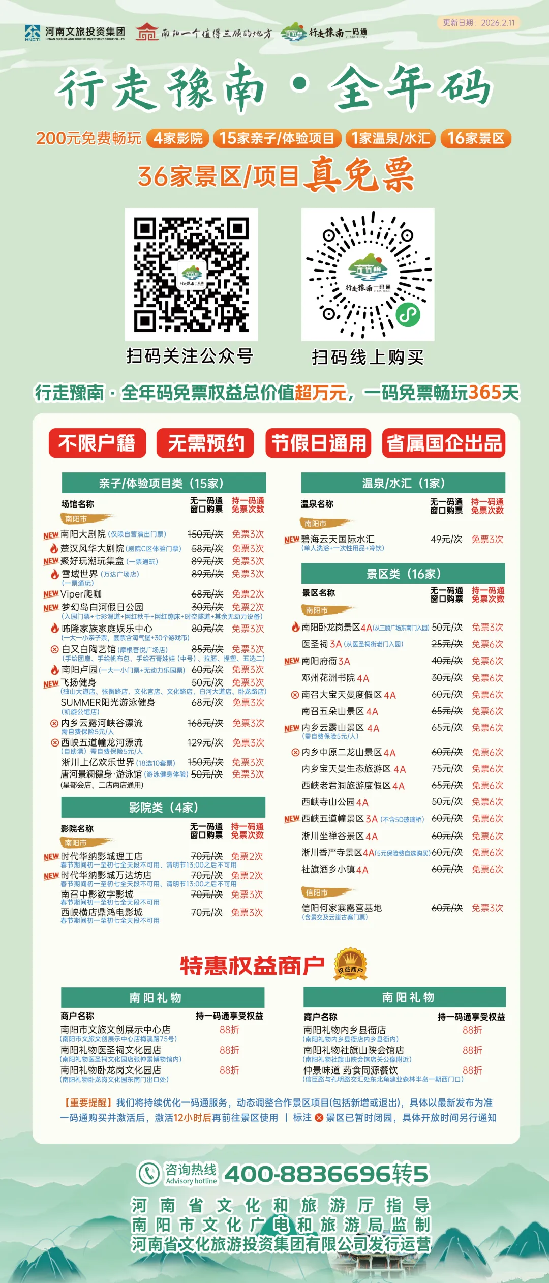 🎈权益内容:单人门票;持行走豫南全年码免门票3次;行走豫南半年码免门票1次