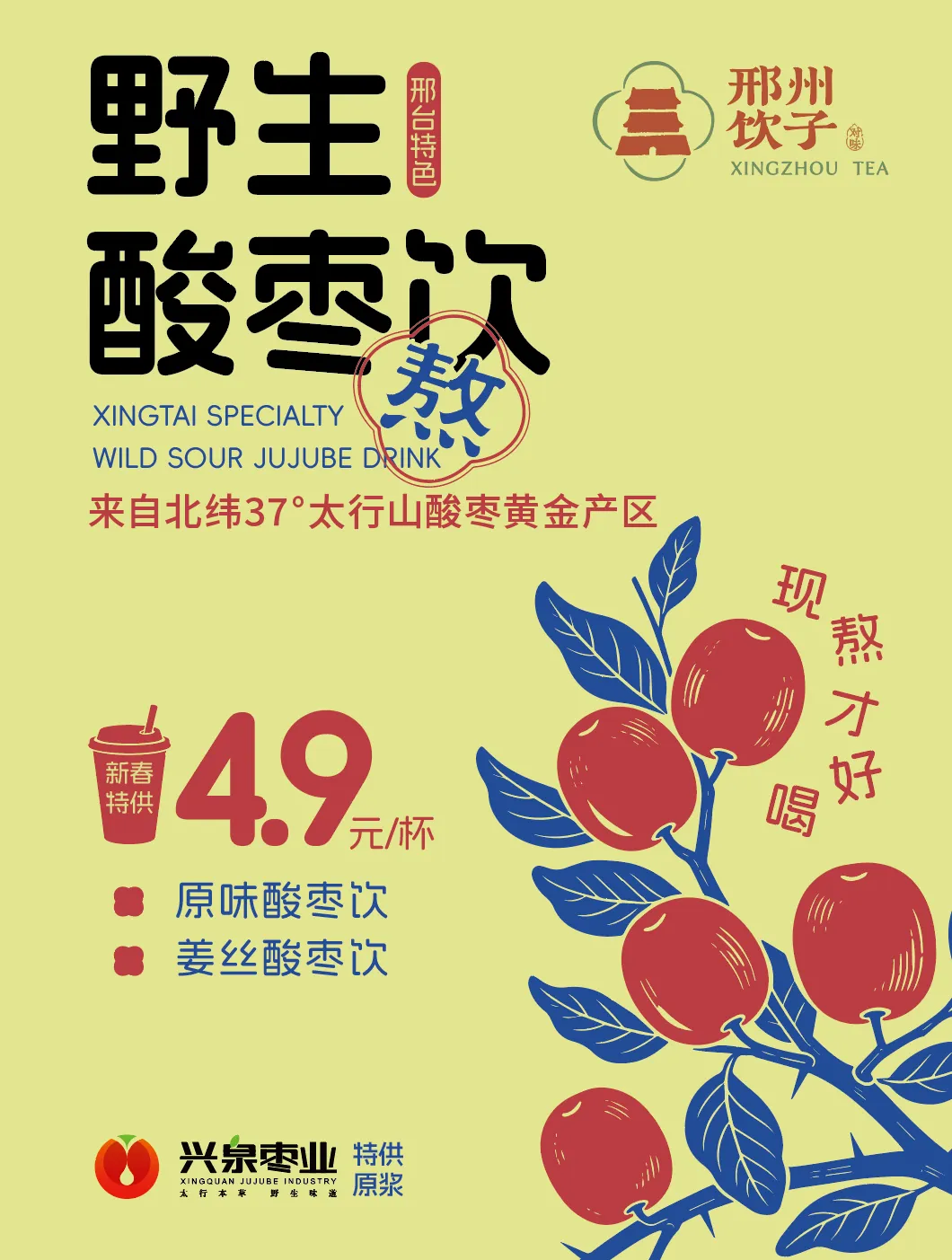 现熬的酸枣饮你是否喝过?兴泉枣业特供酸枣原浆,高温现熬,邢台地道风味,尝到儿时的味道,还有姜丝酸枣饮,暖心又暖身。