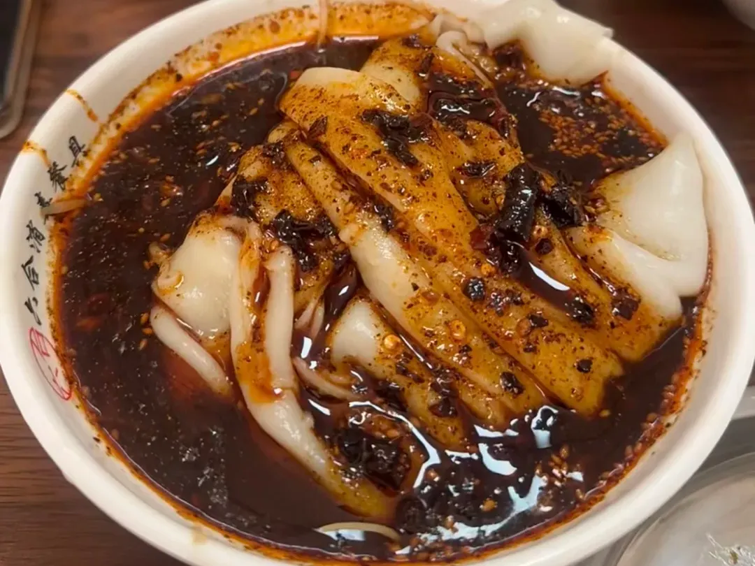 面皮则是汉中地区的经典早餐,面皮Q弹,调料丰富。