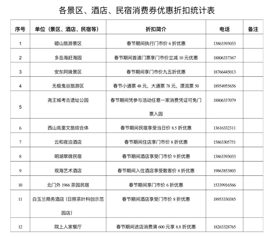 春节期间岚山区景区、酒店、民宿联合优惠政策来啦~