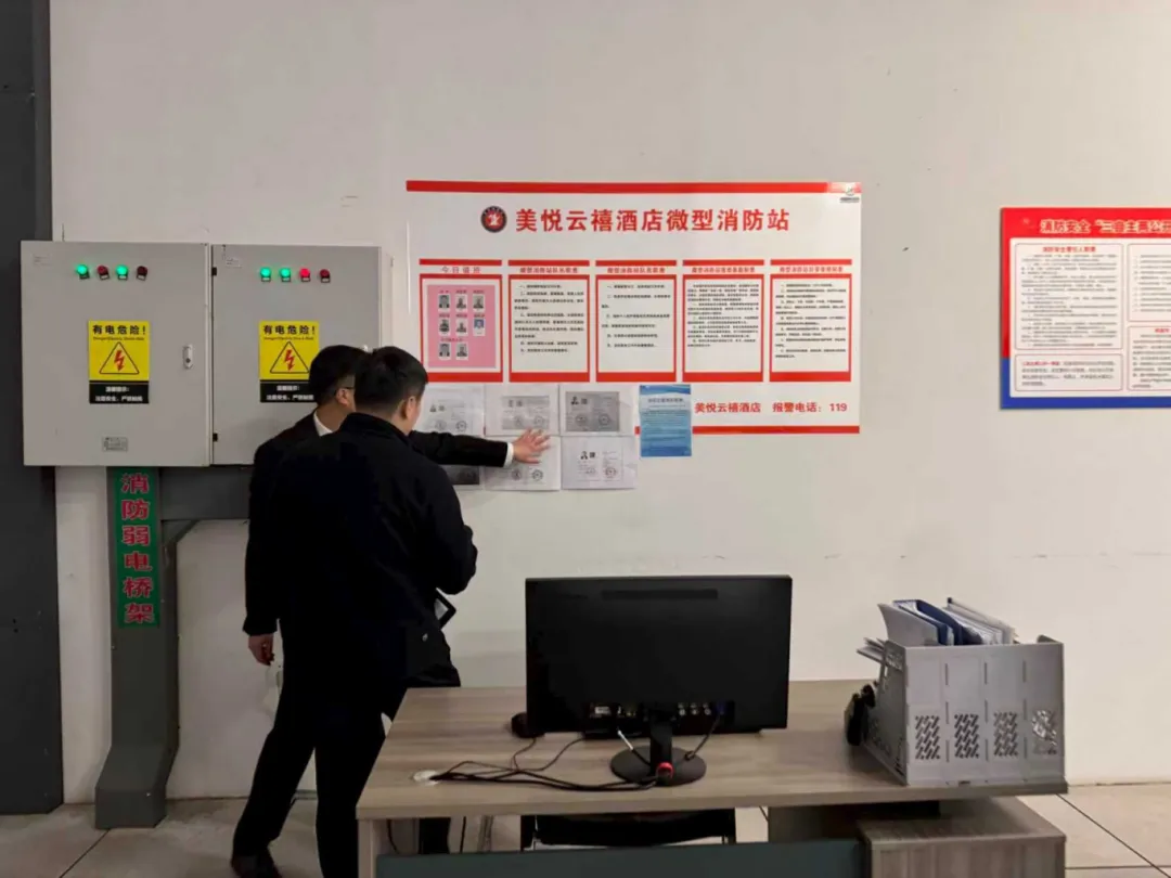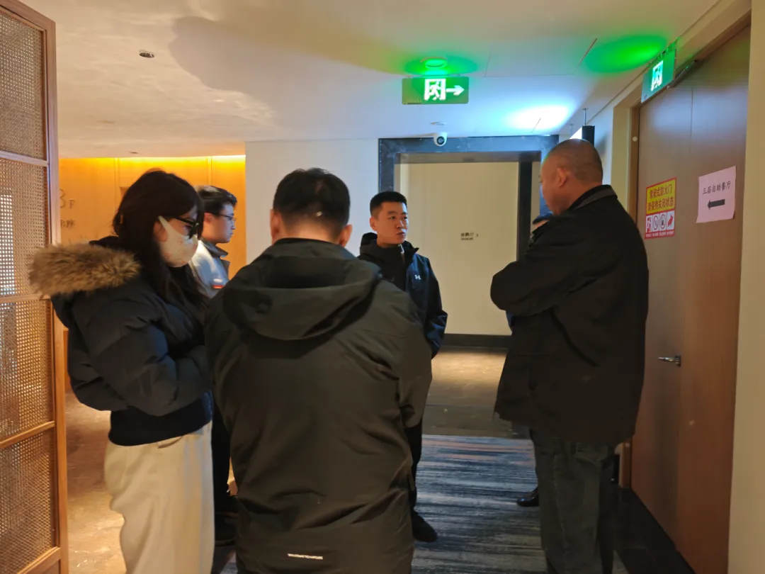 在各酒店,检查组深入消防中控室、高低压配电室、厨房、客房等区域,核查人员持证上岗、设备运行状态、电梯维保记录、疏散通道畅通、防火门管理、安全标识设置,以及食品留样、燃气使用安全等关键环节,并核实了客房应急物资配备,强调必须严把食品卫生与燃气安全关。