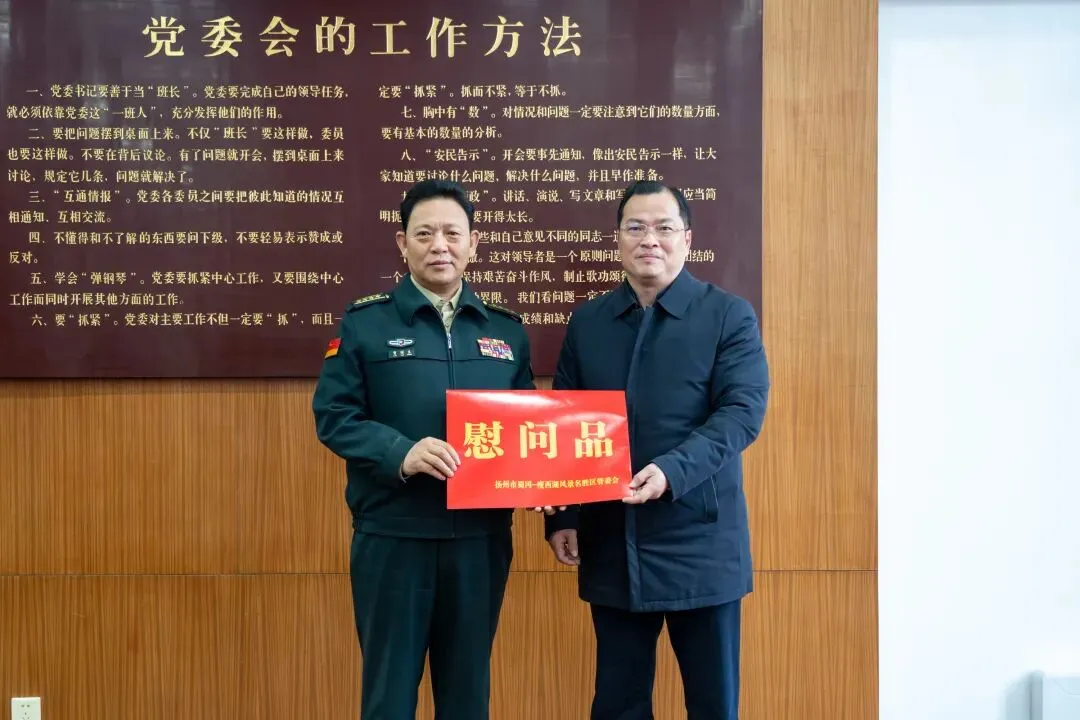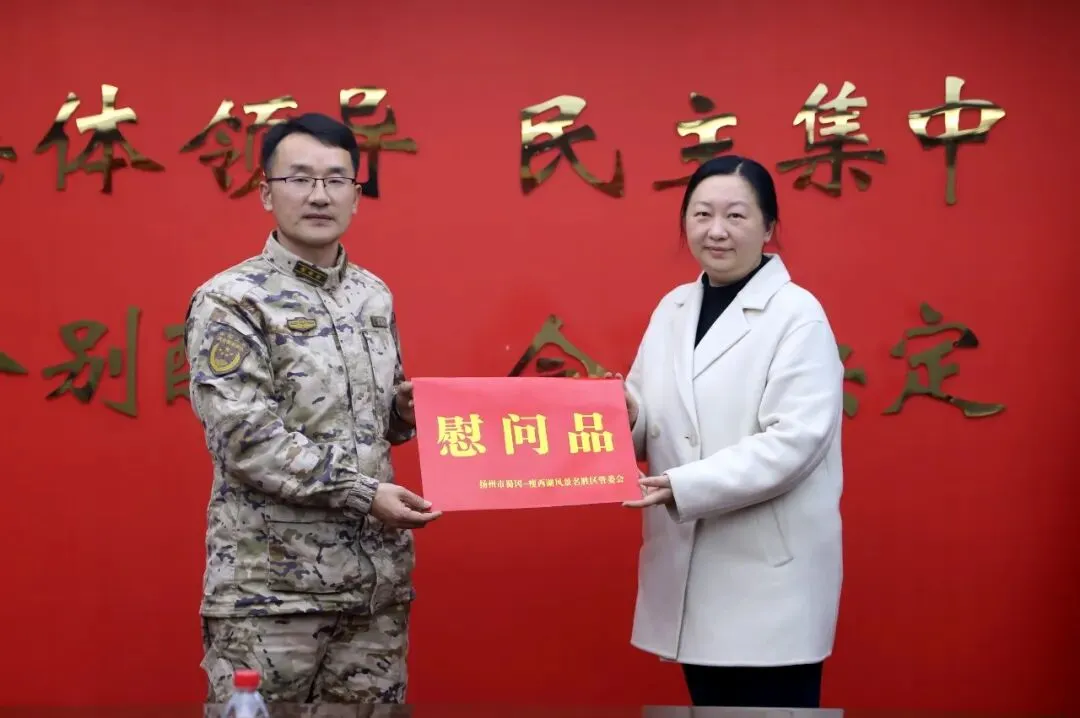 新春佳节即将到来之际,为进一步弘扬双拥共建优良传统,密切军政军民关系,连日来,景区党工委、管委会领导班子成员带着景区人民的深情厚意,先后走访慰问扬州军分区、驻扬某部队、中国武警扬州支队(含勤务保障中队)、扬州市军队离休退休干部服务管理中心、扬州市烈士陵园、江苏省军区扬州第一离职干部休养所、景区消防救援大队,为他们送去慰问品及新春美好祝福。