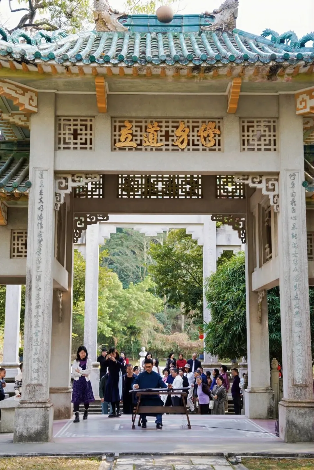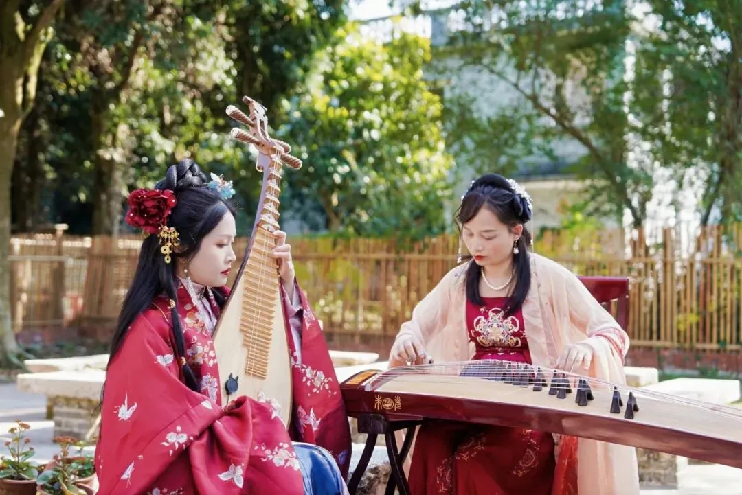 悠扬的古筝弦音在园区内回荡