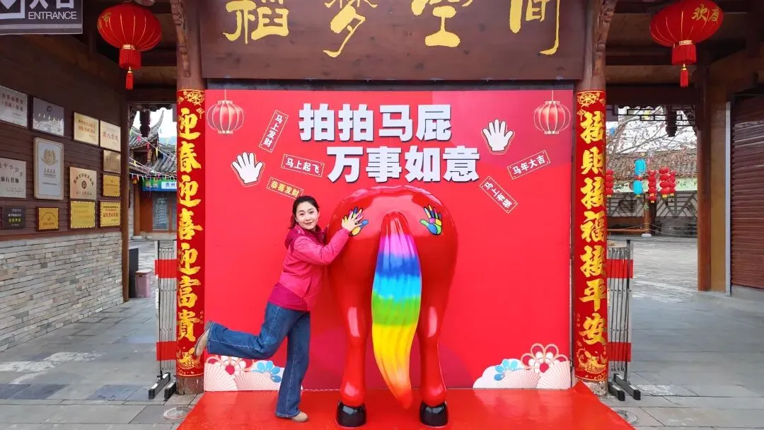 除了氛围感拉满的灯笼装饰,景区还量身打造多款马年主题网红打卡点,为市民游客提供沉浸式新春拍照体验。其中,“拍拍马屁”“马上有钱” 两大趣味打卡点紧扣马年生肖主题,造型别致灵动、寓意吉祥美好,在增添节日趣味性的同时,也送上新一年顺遂安康、财源广进的美好祝愿。四十米飘丝长廊轻盈唯美,飘丝随风舞动,搭配新春主题装饰,随手一拍便是氛围感大片,无论是亲子出游、好友欢聚还是单人打卡,都能定格新春最美瞬间。