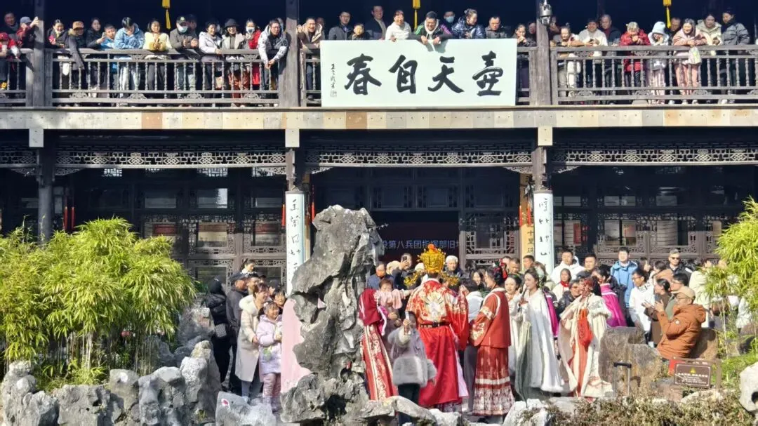 千秋粉黛演艺团队以非遗戏曲与典雅舞韵,将于大年初一上午个园北门外率先献上一场年味十足的新春雅宴。演出间隙随机派发“福禄寿喜财”主题福包,内含个园文创代金券或文创小礼,为新年启幕添福。