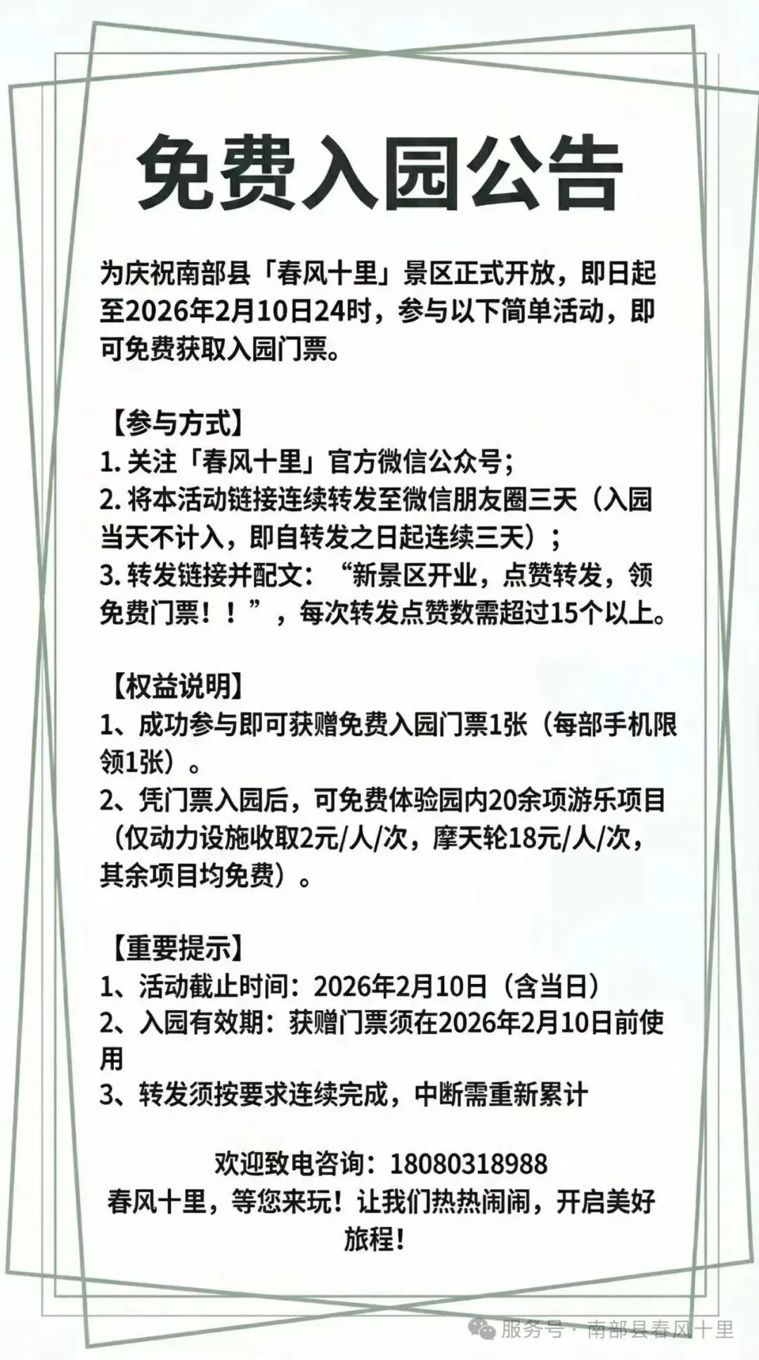 新景区开业,点赞转发,领免费门票! 春风十里公众号